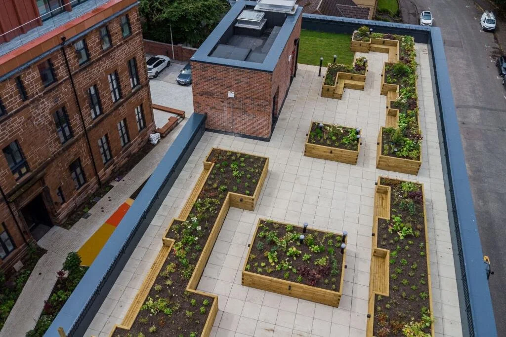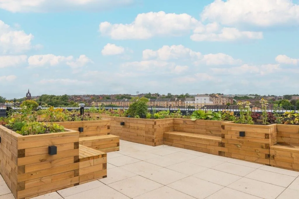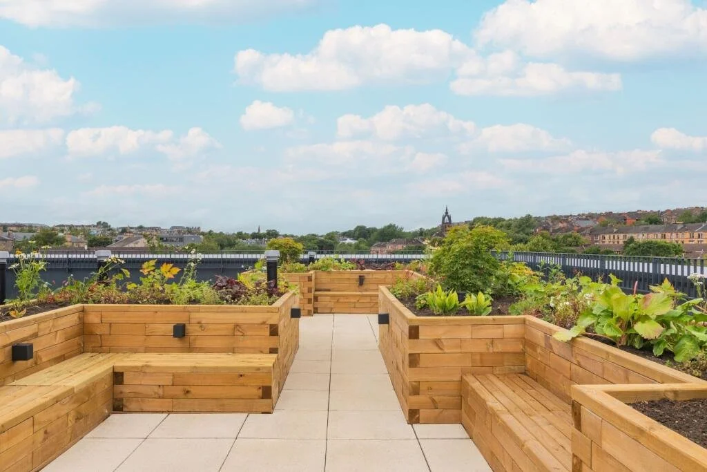 Kelvin Properties wanted to enhance the rooftop of their latest development, The Old Schoolhouse on Napiershall Street, Glasgow. The 1890s school building sits alongside a contemporary residential block, so it was important that the materials chosen complemented both the heritage architecture and the modern surroundings.